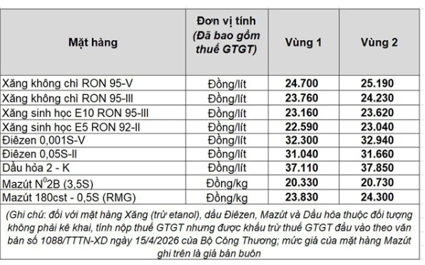 Trong kỳ điều hành giá xăng dầu ngày 16.4.2026, giá dầu trong nước tiếp tục giảm. Theo báo Lao động đăng tải bài viRead More…