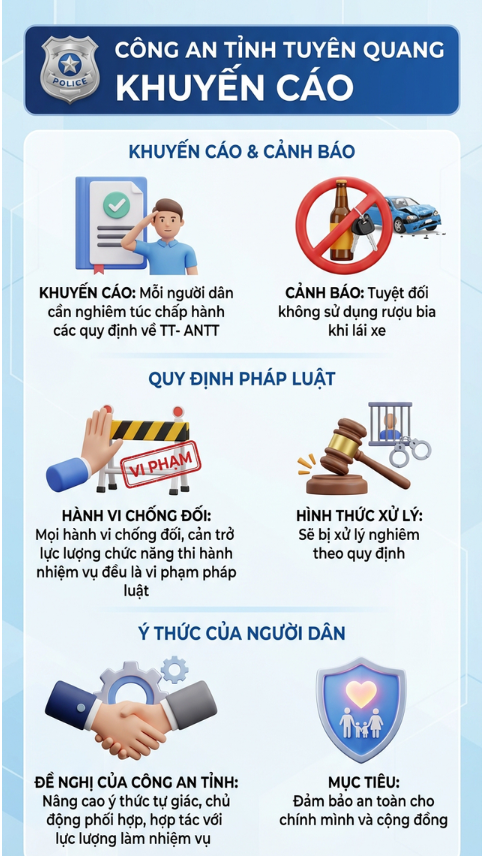 Qua vụ việc trên, Công an tỉnh Tuyên Quang khuyến cáo mỗi người dân cần nghiêm túc chấp hành các quy định của pháp luật về trật tự, an toàn giao thông.