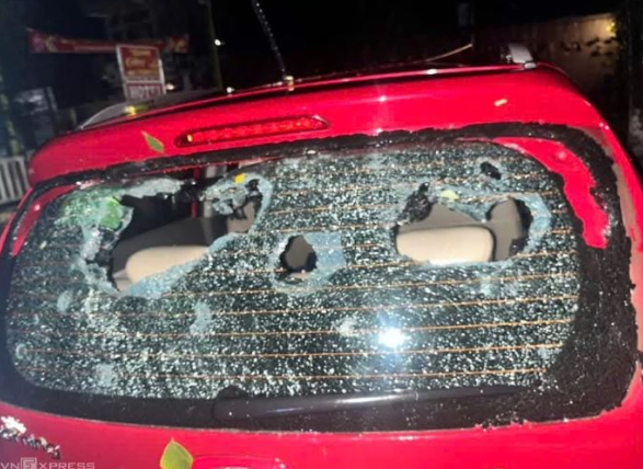 Kính ôtô vỡ do mưa đá ở Bắc Hà. Ảnh: VnExpress.