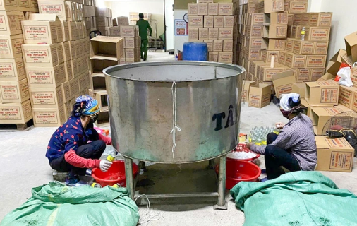Khu vực sản xuất giấm giả bị lực lượng chức năng phát hiện – Ảnh: Công an tỉnh Bắc Ninh