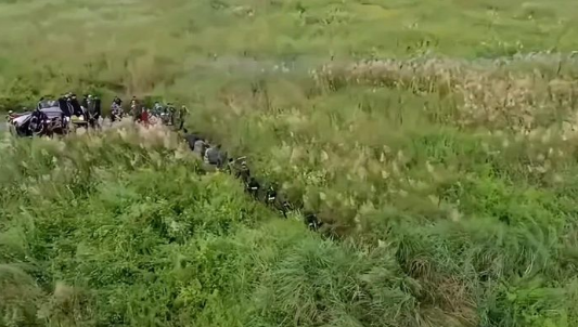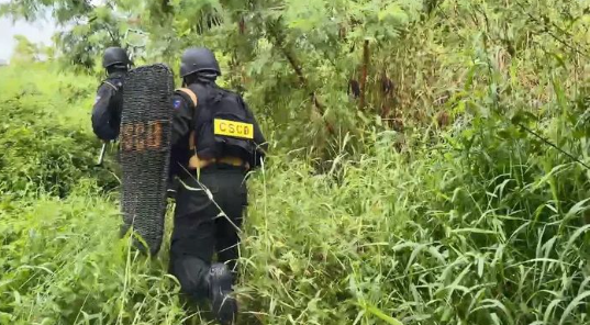 Lực lượng trinh sát gặp không ít khó khăn vì khu vực cỏ lau rậm rạp, cao quá đầu người. Ảnh: CA