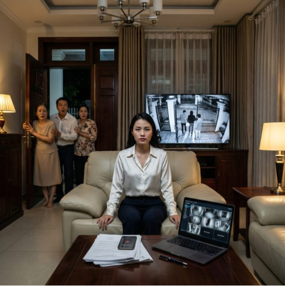 Tiếng khóa cửa vừa bật lên ngoài sân thì tim tôi như bị ai bóp nghẹt. Tôi đang ngồi co người trong căn phòng nhỏ sau bếp, mắt dán vào màn hình điện thoại hiện ba ô camera rung nhẹ. Chị Hạnh đứng trước cửa chính, tay cầm chùm chìa khóa dự phòng mà chỉ có bố mẹ ruột tôi biết chỗ giấu. Sau lưng chị là bố tôi, mặt lạnh tanh, còn mẹ thì liên tục ngoái nhìn ra ngõ như sợ hàng xóm bắt gặp.
