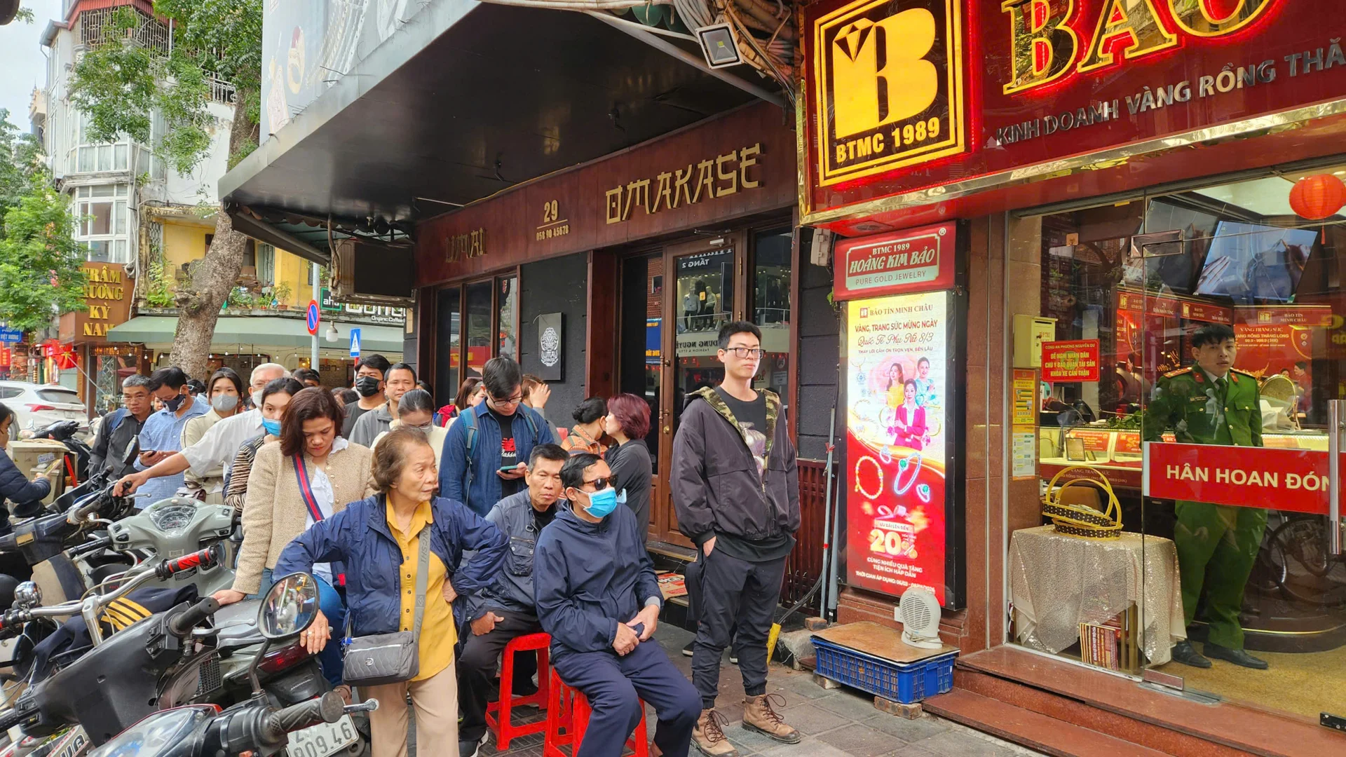 Cơ sở Bảo Tín Minh Châu, số 4 Mai Hắc Đế cũng có rất nhiều người xếp hàng chờ mua trước 9 giờ sáng nay. Ảnh: Thái Nguyễn