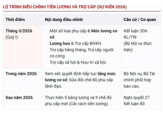 LỊCH TRÌNH ĐIỀU CHỈNH LƯƠNG 2026