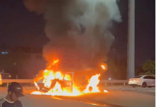 Tuy nhiên, ngọn lửa nhanh chóng bùng phát dữ dội, bao trùm toàn bộ phương tiện. Chỉ trong tích tắc, “biển lửa” đỏ rực một góc đường.