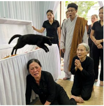 Bởi lẽ trong làng này từ xưa đã truyền tai nhau một câu chuyện: “Nếu mèo đen nhảy qua thithe người mới m/ất, người đó sẽ… mở mắt trở lại.” Nhiều người s/ợ h/ãi, b/ịt miện/g không d/ám nói. Thầy cúng hô lớn, yêu cầu mọi người trá/nh sang hai bên. Ông rút nhanh lá b///ùa màu vàng trong túi, đ///ốt lên rồi đi vòng quanh qu///an t///ài, miệng liên tục n//iệm ch//ú.