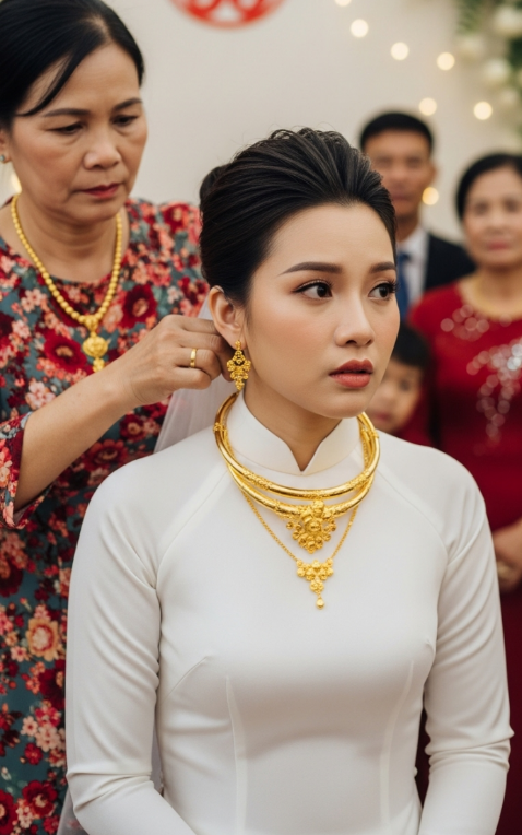 Tôi cố gắng cười, cúi đầu để mẹ chồng đeo từng chiếc kiềng như những chiếc gông vào cổ bởi tôi biết nếu tôi từ chối bây giờ thì cuộc hôn nhân này sẽ tan nát ngay lập tức.