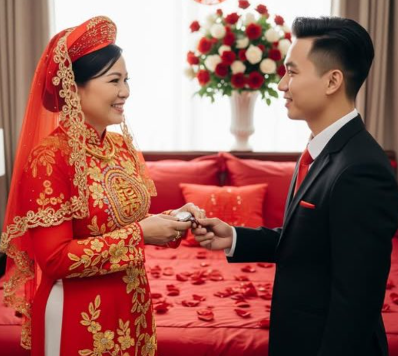 Chị Ngọc bước vào nhẹ nhàng, mặc váy ngủ lụa dài, trang điểm vẫn nguyên, tóc uốn bồng bềnh, ngồi xuống mép giường… rồi chỉ mỉm cười, không nói gì. Không đụng chạm. Không động đậy.