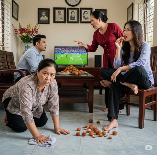 Nghe vậy tôi cũng yên tâm, còn thầm mừng cho con có được nhà chồng tử tế. Nhưng vừa bước chân đến cửa, tôi suýt không nhận ra bà thông gia — tóc tai rối bù, tay xách nặng nề túi rác, quần áo loang lổ mùi thức ăn. Bên trong nhà, con gái tôi ngồi salon, tay cầm chén chè bưởi, chân gác lên bàn như bà hoàng, cười nói tíu tít với bạn qua điện thoại.
