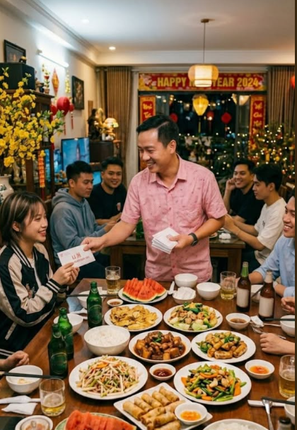 Tuấn bắt đầu phát cho mỗi người… **một phong bì**.