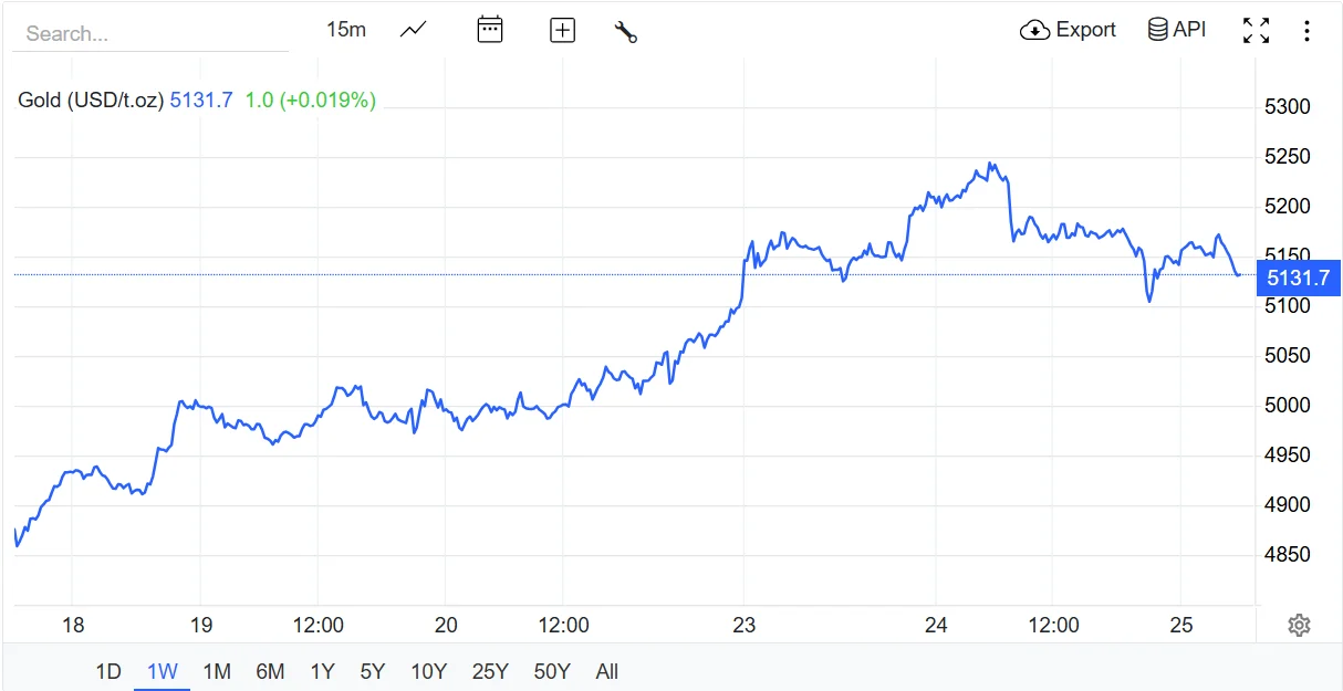 Thị trường vàng không có nhiều phản ứng trước các dữ liệu kinh tế khả quan, khi đang trải qua một số hoạt động chốt lời kỹ thuật sau khi giá vượt mốc 5.200 USD/ounce vào thứ hai. Tuy nhiên, một số nhà phân tích cho rằng dữ liệu này có thể tạo ra áp lực bán mới đối với vàng vì nó cho thấy sự lạc quan được cải thiện trong tâm lý người tiêu dùng.