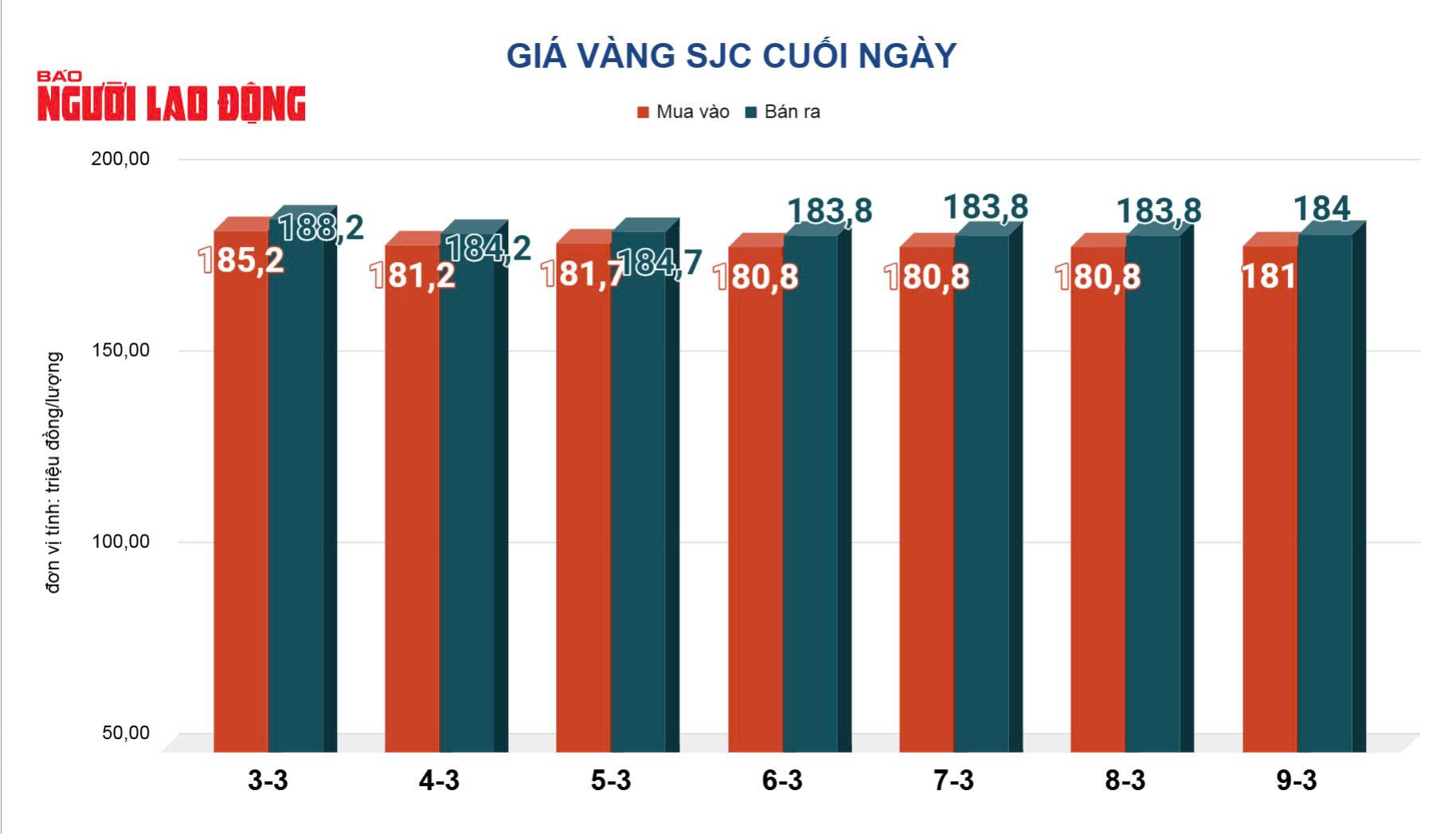 Khoảng 6 giờ ngày 10-3 (giờ Việt Nam), giá vàng hôm nay giảm mạnh sau giai đoạn tăng cao do căng thẳng địa chính trị tại Trung Đông.