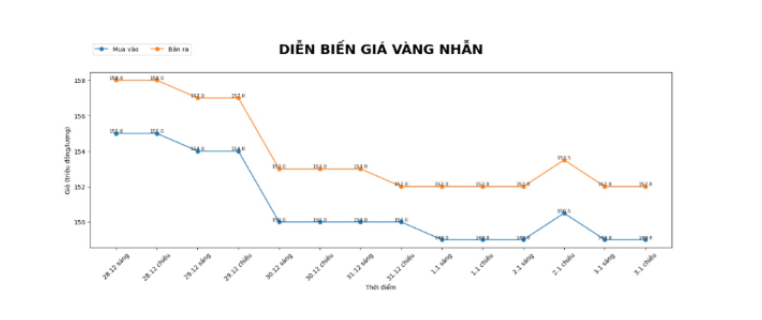 Bảo Tín Minh Châu niêm yết giá vàng nhẫn ở ngưỡng 152-155 triệu đồng/lượng (mua vào – bán ra). Chênh lệch mua vào – bán ra ở mức 3 triệu đồng/lượng.