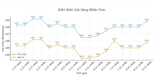 Diễn biến giá vàng nhẫn những phiên gần đây. Biểu đồ: Phan Anh