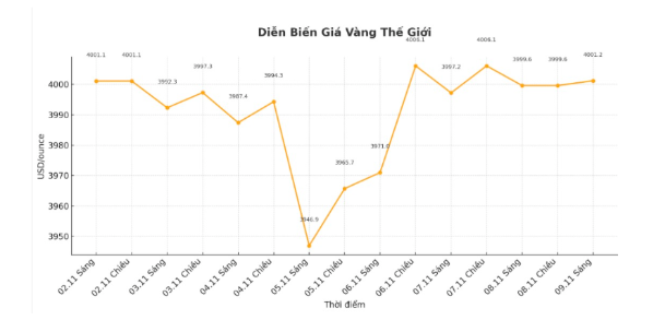 Đóng cửa phiên giao dịch tuần, giá vàng thế giới niêm yết ở ngưỡng 4.001,2 USD/ounce, gần như đi ngang so với một tuần trước.