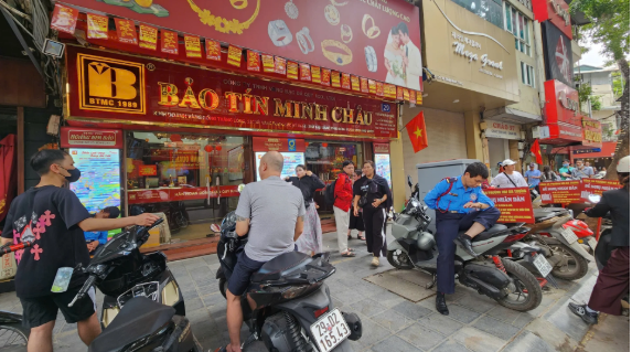 Tương tự, chị V.M.N (xã Hoài Đức, Hà Nội) đi quãng đường dài gần 12km để bán ra – chia sẻ: “Tôi đến từ khá sớm với mục đích ban đầu là bán một chút ít vàng thương hiệu của chính cửa hàng. Sau khi bán ra tôi có ý định mua vào thêm 1 chỉ vàng cho người thân. Nhà xa nên mỗi lần đi tôi sẽ tranh thủ, vì bán ra và mua vào khác nhau, không bị giới hạn”.