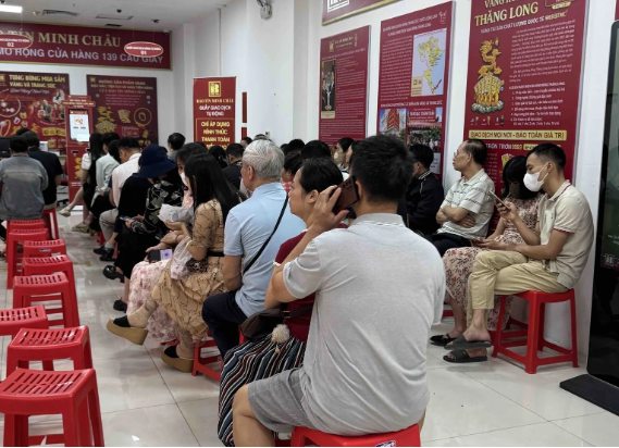 Trong khi đó, anh D.N.H (phường Láng, Hà Nội) – khách hàng có nhu cầu bán ra – cho hay: “Tôi cũng vừa đến, số thứ tự nhận phiếu bán ra đã lên 33 người. Hôm nay lượng người dân đi bán ra đông hơn, phải ngồi chờ. Tuy nhiên, cửa hàng đã thông báo giao dịch tới số thứ tự 20, thời gian chờ chắc không quá lâu”.