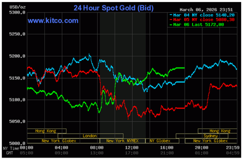 Biểu đồ giá vàng thế giới ngày 7/3. (Ảnh kitco.com)
