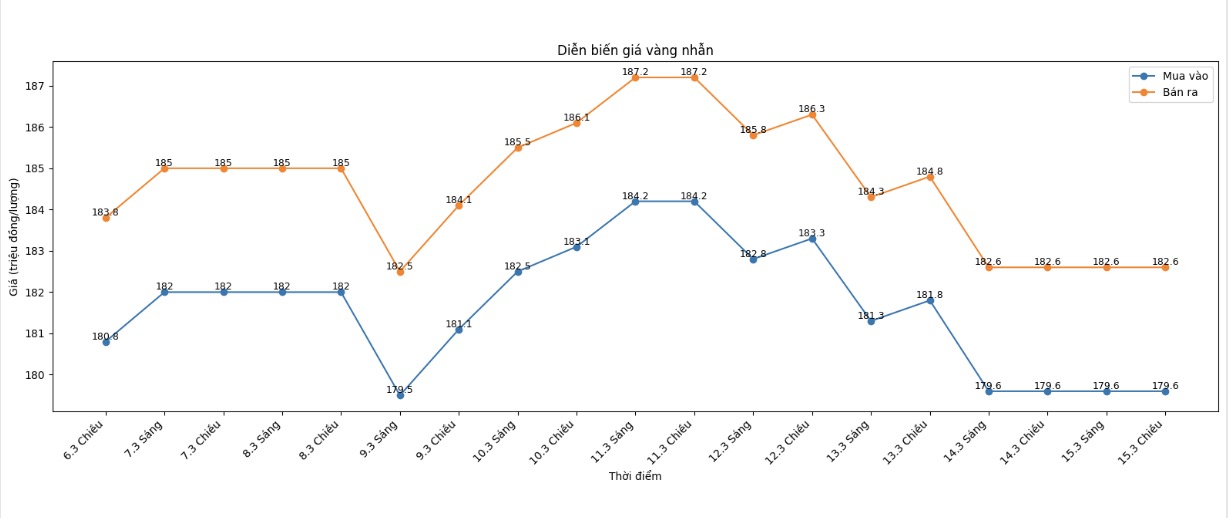 Diễn biến giá vàng nhẫn những phiên giao dịch gần đây. Biểu đồ: Khương Duy
