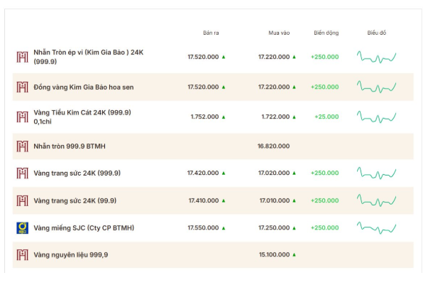 Tương tự, phân khúc vàng nhẫn trơn cũng không nằm ngoài xu hướng giảm. Tại DOJI, PNJ và Bảo Tín Mạnh Hải, mức giá vàng nhẫn được đẩy về ngưỡng 170,5 – 173,5 triệu đồng/lượng. Công ty SJC niêm yết loại vàng này với giá 170,2 – 173,7 triệu đồng/lượng. Nếu so với mức đỉnh cao nhất thiết lập vào lúc 9h00 sáng nay (khi vàng SJC chạm mốc 175,5 triệu đồng/lượng), giá vàng hiện đã bốc hơi khoảng 1,5 – 2,5 triệu đồng mỗi lượng.
