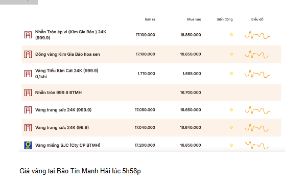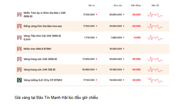 Vàng nhẫn PNJ, Phú Quý niêm yết ở mức 168 – 171 triệu đồng/lượng mua vào – bán ra (giảm 500.000 đồng/lượng ở cả hai chiều).