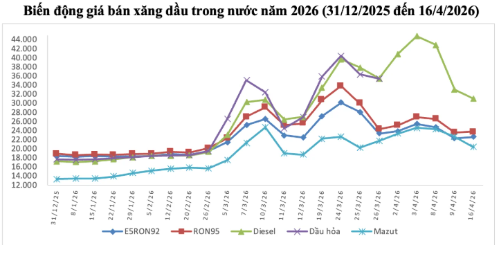 Bộ Công Thương cho biết, nhờ các chính sách hỗ trợ, giá xăng dầu bán lẻ của Việt Nam hiện đang ở mức trung bình và thấp hơn khá nhiều so với các nước có chung đường biên giới. Theo tính toán ngày 16/4, trong khi xăng RON tại Việt Nam là 23.761 đồng/lít thì tại Thái Lan lên tới 35.371 đồng/lít, Lào là 47.975 đồng/lít và Trung Quốc là 36.200 đồng/lít. Đối với mặt hàng dầu, giá tại Việt Nam là 31.041 đồng/lít, thấp hơn đáng kể so với Lào (59.573 đồng/lít) hay Campuchia (42.178 đồng/lít).
