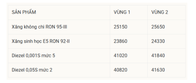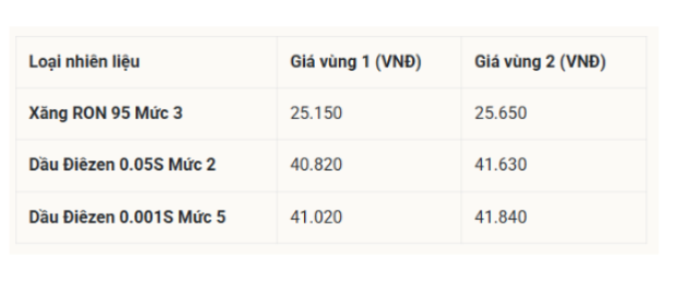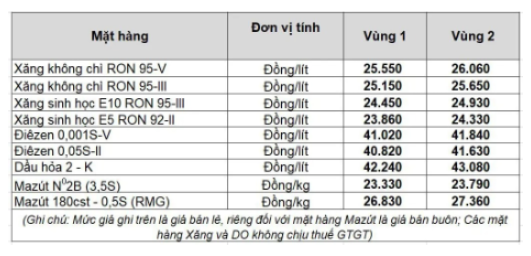 Giá xăng RON95-III không cao hơn 25.159 đồng/lít, giá Dầu diesel 0.05S không cao hơn 40.827 đồng/lít, giá dầu mazut 180CST 3.5S không cao hơn 23.331 đồng/kg.