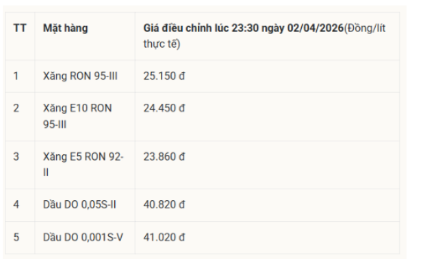 Ngày 3/4/2026, Báo Lâm Đồng đăng tải bài viết: “Giá xăng dầu hôm nay 3/4/2026: Bảng giá cả xăng dầu tại Petrolimex, Thalexim, PVOIL và Mipecorp” có nội dung như sau: