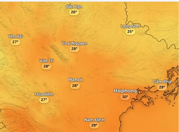 – Bắc Bộ và Thanh Hóa: Có mưa rào và dông vài nơi.