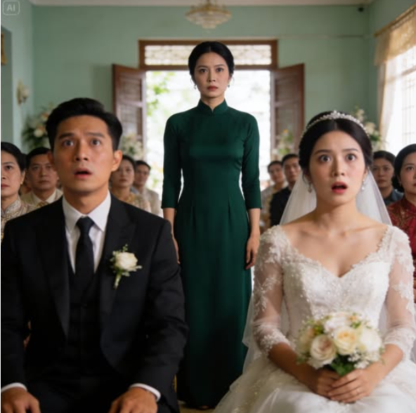 Đám cưới biến thành một sân khấu hỗn loạn. Quốc Huy không còn vẻ đắc thắng.