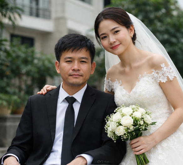 Đám cưới diễn ra trong sự lặng lẽ. Không pháo, không tiếng nhạc, không nụ cười. Chỉ có tôi, trong chiếc váy trắng cũ, đứng cạnh người đàn ông trầm tĩnh ấy, nhận những ánh nhìn thương hại và dèm pha.