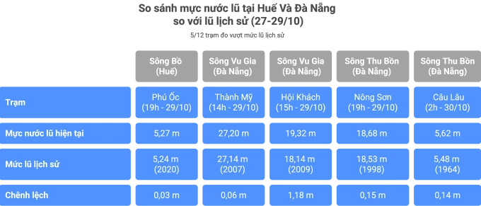Các kỷ lục lũ được xác lập trong đợt mưa lũ từ 26 đến 30/10 tại miền Trung.