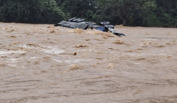 Chiếc xe bị nước lũ cuốn khi cố ý vượt ngầm tràn đang ngập nước. Ảnh: Người dân cung cấp