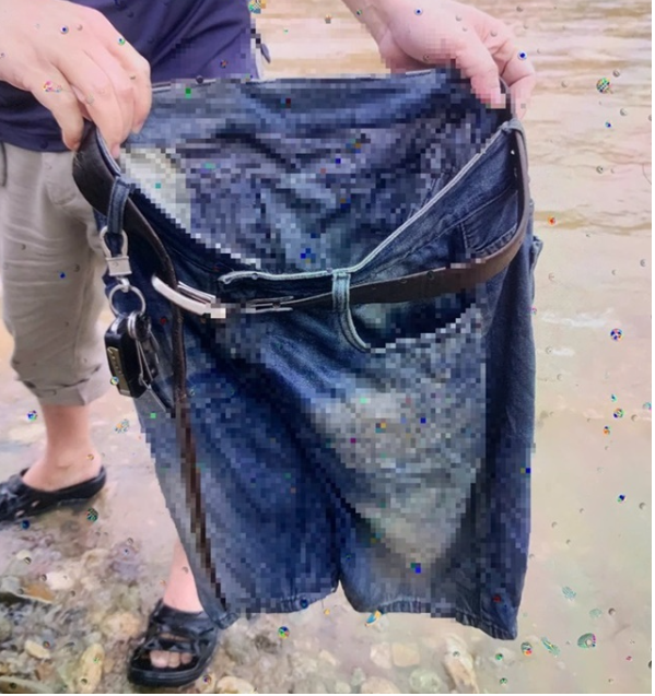 Lực lượng chức năng tìm được chiếc quần, chìa khóa xác định là của tài xế xe đầu kéo bị lũ cuốn. Ảnh: H. Nguyên