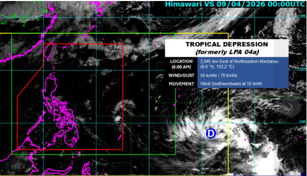 Theo cập nhật mới nhất tính đến 8:00 sáng nay (09/04/2026), áp thấp nhiệt đới (trước đó là vùng áp thấp LPA 04a) đang được Cục quản lý Thiên văn, Địa vật lý và Khí quyển Philippines (PAGASA) theo dõi chặt chẽ bên ngoài khu vực dự báo của quốc gia này.