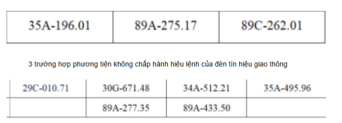 Cụ thể, qua hệ thống camera giám sát giao thông, lực lượng chức năng phát hiện 3 trường hợp phương tiện không chấp hành hiệu lệnh của đèn tín hiệu giao thông. Bên cạnh đó, hệ thống camera cũng ghi nhận 6 trường hợp phương tiện quay đầu xe tại khu vực có biển báo cấm quay đầu đối với loại phương tiện đang điều khiển.