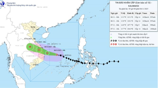 Thứ trưởng Nguyễn Hoàng Hiệp thông tin, bão số 13 rất mạnh, di chuyển nhanh, tăng cấp trong di chuyển, thời điểm hiện tại, sức gió không có dấu hiệu suy giảm. Đường đi của bão sẽ hướng thẳng Quy Nhơn. Từ trưa 6/11 bắt đầu mưa to. Dự báo, tối 6/11, bão số 13 đổ bộ vào đất liền, gặp triều cường, vì vậy, vùng ven biển khả năng nước dâng rất cao, lên 7-8 m.
