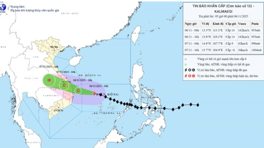 Thứ trưởng Nguyễn Hoàng Hiệp thông tin, bão số 13 rất mạnh, di chuyển nhanh, tăng cấp trong di chuyển, thời điểm hiện tại, sức gió không có dấu hiệu suy giảm. Đường đi của bão sẽ hướng thẳng Quy Nhơn. Từ trưa 6/11 bắt đầu mưa to. Dự báo, tối 6/11, bão số 13 đổ bộ vào đất liền, gặp triều cường, vì vậy, vùng ven biển khả năng nước dâng rất cao, lên 7-8 m.