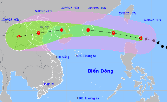 Theo Trung tâm Dự báo khí tượng thủy văn quốc gia, đến 7h sáng nay (22/9), siêu bão Ragasa đang cách đảo Lu-Dông (Philippines) khoảng 160km về phía Đông Bắc. Sức gió mạnh nhất vùng gần tâm bão mạnh cấp 17 (202-221km/giờ), giật trên cấp 17. Di chuyển theo hướng Tây Tây Bắc với tốc độ khoảng 20km/h.