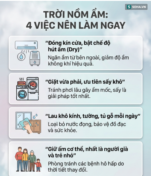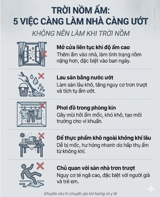Vì vậy, thay vì xử lý theo thói quen, mỗi gia đình nên chủ động có các phương án đối phó với “mùa nồm” ngay từ đầu. Một vài điều chỉnh nhỏ trong sinh hoạt có thể giúp hạn chế nấm mốc, bảo vệ sức khỏe và giảm bớt bất tiện trong những ngày mưa phùn kéo dài.