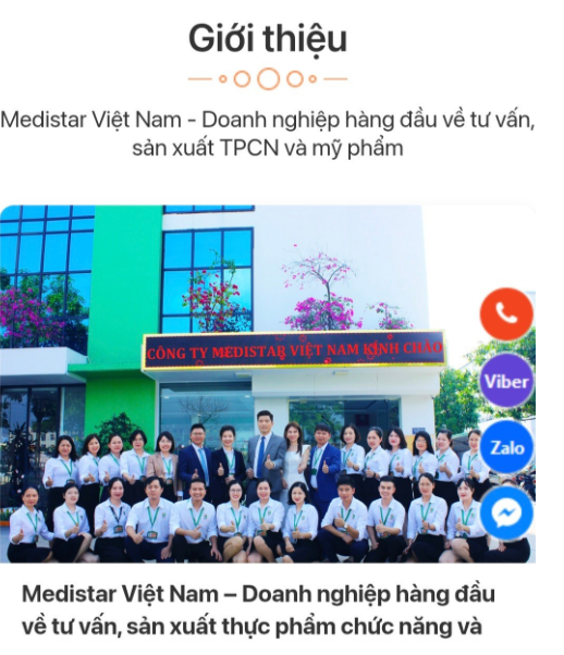 Trên website https://medistar.com.vn của Công ty TNHH Medistar Việt Nam sáng nay nêu, công ty này tự giới thiệu là doanh nghiệp hàng đầu trong lĩnh vực tư vấn, sản xuất thực phẩm chức năng và mỹ phẩm.