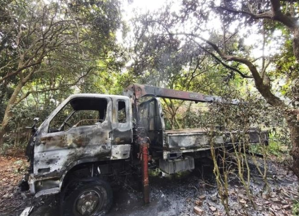 Người dân cho biết, họ nghe thấy tiếng nổ phát ra sau đó ngọn lửa bùng lên ở xe tải đang di chuyển cây. Sự việc nhanh chóng được báo cho chính quyền địa phương.