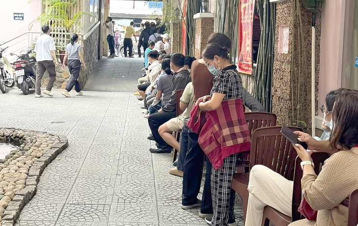 Còn trong khu vực chờ tới lượt mua 1 lượng vàng miếng/người, nhiều người đợi mỏi mòn. Đó là những người lấy số thứ tự từ… chiều hôm trước. Anh Bảo Khang (ngụ phường Xuân Hòa) cho biết số mình là 38 nhưng đợi mỏi mòn chưa tới lượt.