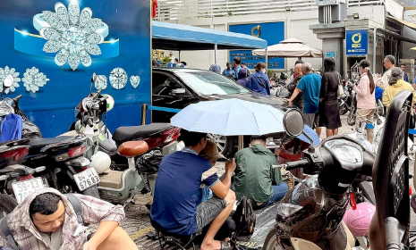 Nhiều người thất vọng, nhưng không ai rời đi ngay. Họ nấn ná ở lại, “rồng rắn” nối đuôi nhau thành hàng dài hơn 100m trước cổng với hy vọng đến buổi chiều có thể hên xui mua được 1 lượng vàng miếng.